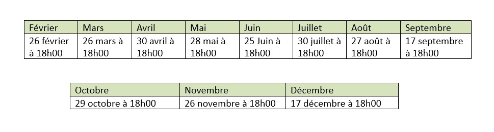 En voici le calendrier pour 2026 :